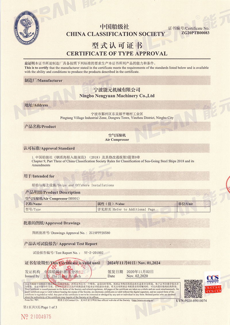 3、獲得船級(jí)社工廠型式認(rèn)可,提供船級(jí)社認(rèn)證證書;
